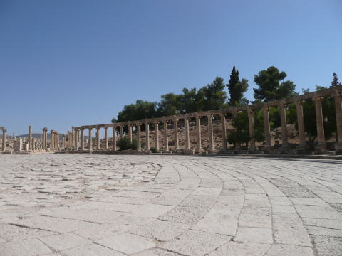 | 南門の前にはフォーラムと呼ばれる楕円形の広場があります。その向こうにメインストリートである列柱通り(カルド)を見ることができます。 |