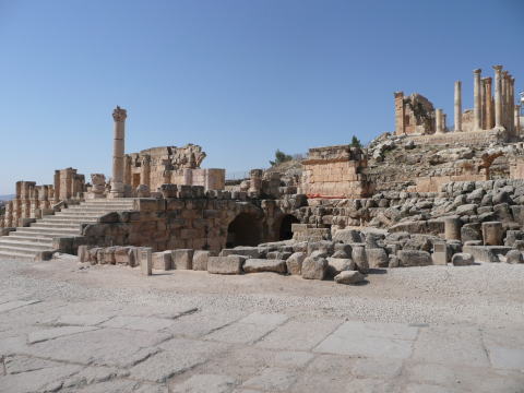 | アンマンから北に向かって約50キロ、車でおよそ1時間、ジェラシュという小さな街に到着しました。ジェラシュという街は多くの日本人にとっては全く無名の街です。私自身もヨルダンに行くまでは一度も耳にしたことはありませんでした。しかし、ジェラシュはヨルダンではペトラに次ぐ巨大な遺跡であって、必ずといっていいほどツアーのコースにも入っています。 ジェラシュは古代ローマ時代に造られました。ローマ時代の街並みの様子が他のどこよりもより完全に近い形で残されています。ジェラシュ遺跡の多くの建造物はおおむね1世紀から3世紀にかけて造られたものとされています。ローマ帝国がつくった大シリアにおけるデカポリス(十都市)の一つでした。 ( 大シリアの意味については 大シリアの歴史 参照 ) 紀元前63年にポンペイウスによって征服されたセレウコス朝シリア(紀元前312〜紀元前63)では、その後ローマ人によってローマ風の10の都市(デカポリス)が造られました。フィラデルフィア(現在のアンマン)、ダマスカス、ジェラシュなどです。そして、デカポリスの往年の姿を最も今に残している街、それがジェラシュです。 なぜ、状態が良く残されているかというと、それは749年にあった地震のせいです。この地震でジェラシュは廃墟と化し、土の中に埋もれてしまいました。それが逆に、風化を免れ、今日にまで往年の姿を残すことになりました。そのため、ジェラシュは「中東のポンペイ」とも呼ばれる場合があります。 (参考文献)『イスラムの誘惑』p.78 菊間潤吾 新潮社 2001年4月25日刊 1806年、あるドイツ人に発見されるまでは、ジェラシュは忘れ去られた街でした。1878年、オスマン=トルコがコーカサス地方の住民をここに移住させ、新たに街作りを始めました。現在では遺跡のすぐ目の前に小さな街ができています。 (参考文献)『ヨルダン・シリア 聖書の旅』p.165 牛山剛 ミルトス 1988年9月1日刊 (アンマンの街もコーカサス人の移住からできはじめたことは前のページで紹介したところです。どうも、ヨルダン北部はコーカサス地方と縁が深いようですね。) さて、これから、予想以上に大規模なジェラシュの遺跡巡りをしましょう。 |