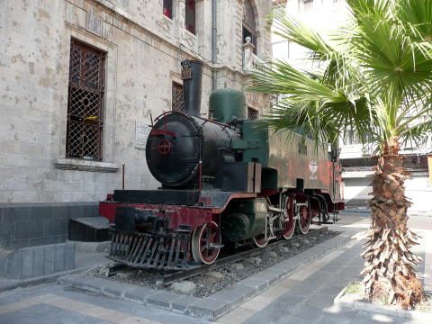 | ヒジャーズ駅は1917年に造られました。ダマスカスがまだオスマン帝国の支配下にあった時代です。オスマン帝国はダマスカスからサウジアラビアのメディナを結ぶ鉄道(ヒジャーズ鉄道)を建設し、ヒジャーズ駅はその始発駅として造られました。 ヒジャーズ鉄道は完成後まもなくアラビアのロレンスなどの破壊活動にあい、寸断されました。現在でもそのほとんどの区間は廃線となっています。そして、この駅も現在、実際の駅としては利用されておらず、展示館となっています。 |