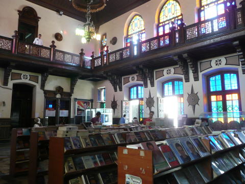 | ステンドグラスの美しい駅舎は、現在、古本や記念品の展示室となっています。 |